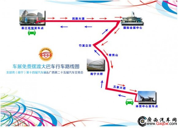 車展期間客戶可以到邕江賓館乘坐由主辦方提供的免費(fèi)擺渡大巴車前往會(huì)場(chǎng)哦,大巴車每天工作時(shí)間9:00-17:00點(diǎn),每15分鐘就有一趟車。