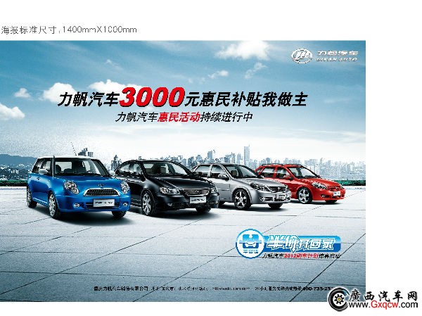即日起,凡購(gòu)買(mǎi)力帆旗下320、620、520、520i車(chē)系均可以享受3000元惠民補(bǔ)貼。實(shí)實(shí)在在的優(yōu)惠,實(shí)實(shí)在在的價(jià)格,機(jī)會(huì)不容錯(cuò)過(guò)!