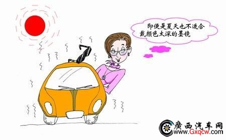 墨鏡的暗色能延遲眼睛把影象送往大腦的時(shí)間,這種視覺延遲造成速度感覺失真,使司機(jī)作出錯(cuò)誤判斷。有數(shù)據(jù)表明,過深的墨鏡會(huì)把司機(jī)對(duì)情況的反應(yīng)時(shí)間延長100毫秒,增加2.2米的急剎車距離。