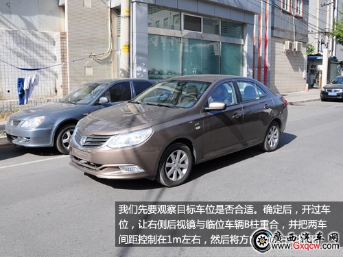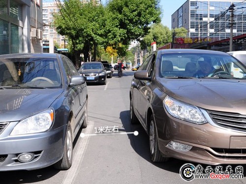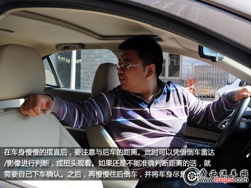 接下來,我們先要觀察目標(biāo)車位是否合適。確定后,開過車位,讓右側(cè)后視鏡與臨位車輛B柱重合,并把兩車間距控制在1m左右,然后將方向盤向右側(cè)打死。