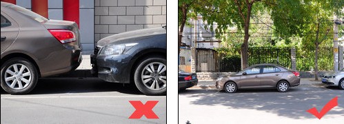 在城市道路中,最常用到的就是側(cè)方位停車。在停車前,我們首先要了解的是:所有汽車都是前輪為轉(zhuǎn)向輪,后輪跟隨前輪行進(jìn),前輪的橫向移動能力要大于后輪。所以,在停車過程中,倒車入庫要比“直插”入庫更為容易。