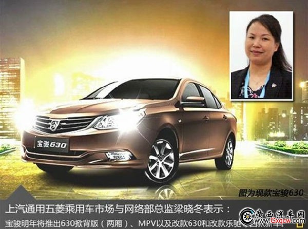 寶駿品牌自發(fā)布以來(lái)依靠寶駿630和樂(lè)馳兩款車型累計(jì)銷售車輛近11萬(wàn)輛,進(jìn)一步豐富產(chǎn)品內(nèi)容并提升市場(chǎng)競(jìng)爭(zhēng)力成為其未來(lái)的主要發(fā)展方向。上汽通用五菱總經(jīng)理沈陽(yáng)曾在接受網(wǎng)通社采訪時(shí)表示:未來(lái)我們將陸續(xù)推出A0級(jí)轎車、SUV、MPV等多款新產(chǎn)品。對(duì)此,上汽通用五菱乘用車市場(chǎng)與網(wǎng)絡(luò)部總監(jiān)梁曉冬則向網(wǎng)通社表示:“寶駿明年將推出包括630掀背版(兩廂)在內(nèi)的四款新車!本W(wǎng)通社查閱相關(guān)資料后獲悉,寶駿有望為MPV等多款新車型匹配全新1.5T渦輪增壓引擎。