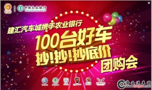 南寧遠昌寶駿4S店攜手中國農(nóng)業(yè)銀行廣西分行,于2014年3月22日特推出“百臺好車抄底價團購活動”,凡持農(nóng)行信用卡客戶到南寧遠昌購車購車,并辦理分期貸款,即可獲得500——1000元加油卡,并享受最低0手續(xù)費活動!詳詢:0771-3869898。