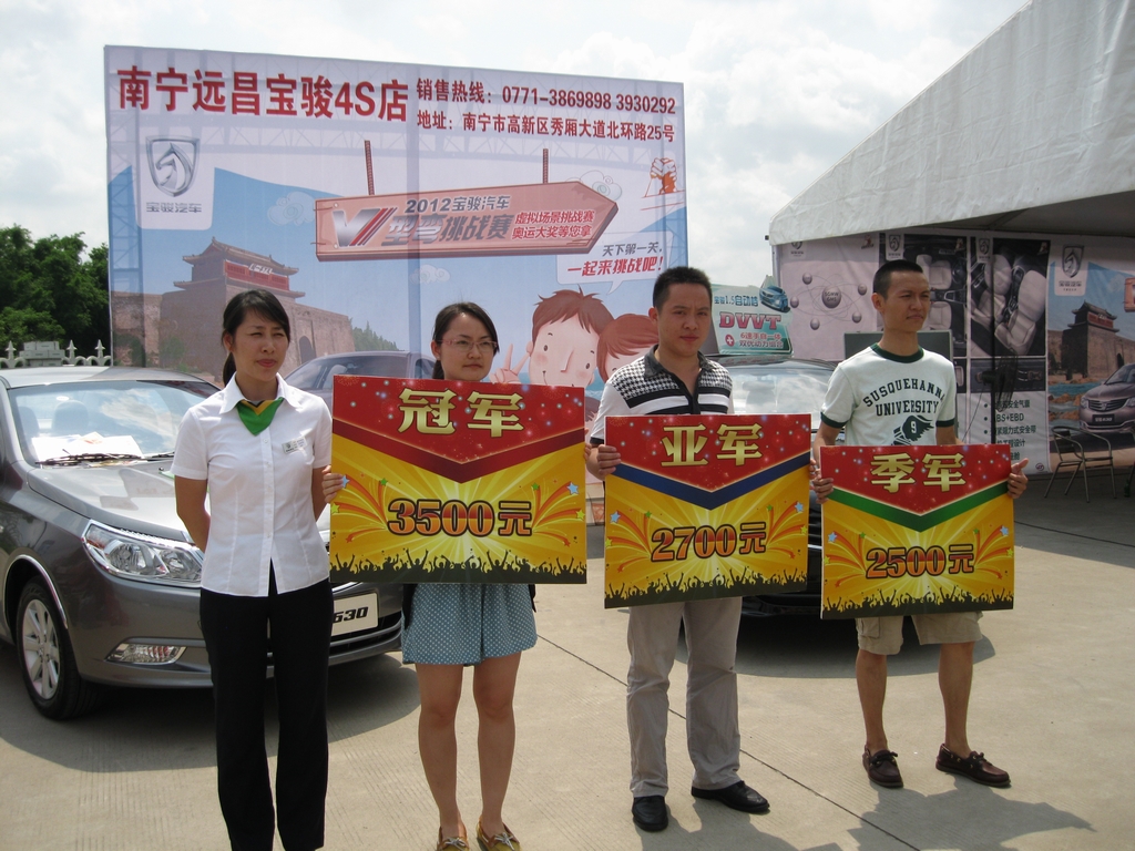5月12日,2012寶駿汽車(chē)V型彎挑戰(zhàn)賽在南寧遠(yuǎn)昌寶駿4S店拉開(kāi)帷幕,回顧2011年寶駿汽車(chē)V型彎挑戰(zhàn)賽在全國(guó)各地火熱的開(kāi)展,這使得越來(lái)越多的人開(kāi)始了解寶駿,相信寶駿,而在全國(guó)總決賽中寶駿630挑戰(zhàn)挑戰(zhàn)“天下**灣”的情景更是讓人目目在歷。