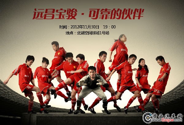 2012年11月30南寧遠(yuǎn)昌寶駿車(chē)友VS南寧遠(yuǎn)昌寶駿4S店“足球友誼賽”車(chē)友會(huì)活動(dòng)即將開(kāi)始,在此我們召集喜愛(ài)足球運(yùn)動(dòng)的寶駿車(chē)主們,你們?cè)谀睦铮口s快集合起來(lái),一齊到北湖空間球場(chǎng),參加南寧**屆寶駿車(chē)主運(yùn)動(dòng)會(huì)吧。。