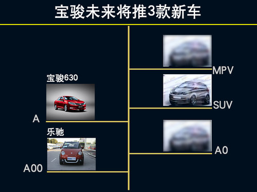 目前,寶駿已形成寶駿630、寶駿樂馳兩大系列,18款車型的產(chǎn)品布局,覆蓋了A級(jí)、A00級(jí)家轎市場(chǎng)。未來,寶駿還將每年推出一款車,逐步覆蓋A0級(jí)、SUV、MPV市場(chǎng),進(jìn)一步完善產(chǎn)品布局。2015年,寶駿品牌要承擔(dān)30萬輛的銷量,以幫助公司完成200萬輛的目標(biāo)。