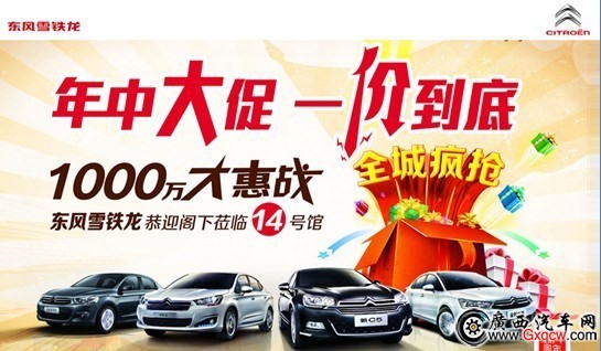 年中大促,一價優(yōu)惠到底——全城瘋搶1000萬大惠戰(zhàn)恭迎閣下17-20日蒞臨14號館東風(fēng)雪鐵龍展位,免費搶歐元、看洋模、送門票、更有免費冰淇淋品嘗一切精彩盡在第三屆廣西國際汽車文化節(jié)14號館東風(fēng)雪鐵龍展位。
