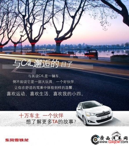 C4L傳承了法系車極致的操控性和人性化配置的品質(zhì),為趙先生的駕車生活帶來了不同凡響的法式體驗和無限精彩,而趙先生全家都非常喜歡這款集休閑、時尚、運動于一身的家用車型!吧钤谟隗w驗,喜歡運動,喜歡生活,喜歡我的C4L!壁w先生如是說。