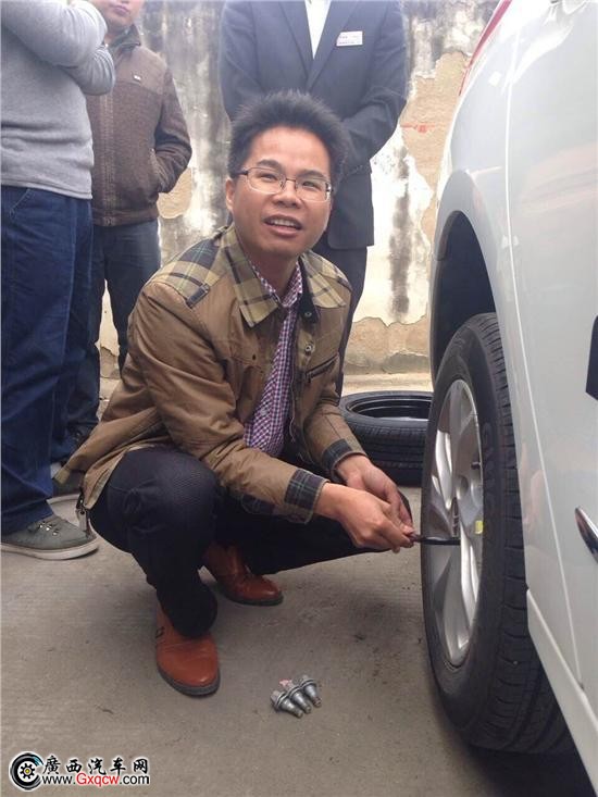 操作完畢,車友們準(zhǔn)備開始演練更換備胎了,有沒有人自愿演示一下。!
