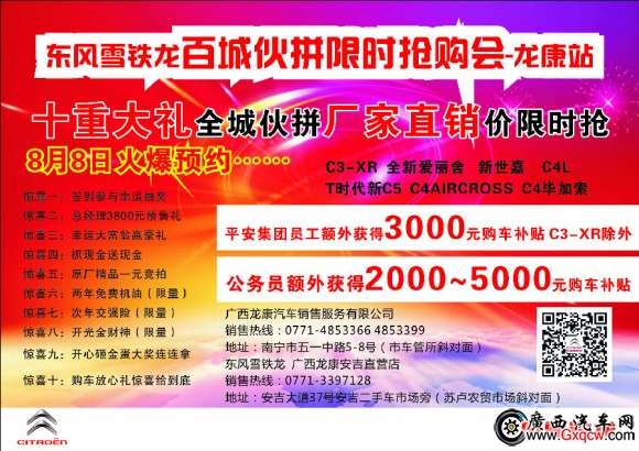 廠價風(fēng)暴 東風(fēng)雪鐵龍百城伙拼搶購會——登陸南寧。
