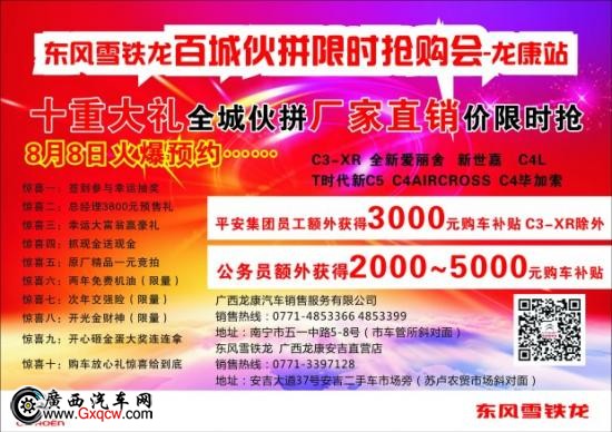 廠價(jià)風(fēng)暴 東風(fēng)雪鐵龍百城伙拼搶購會——登陸南寧。