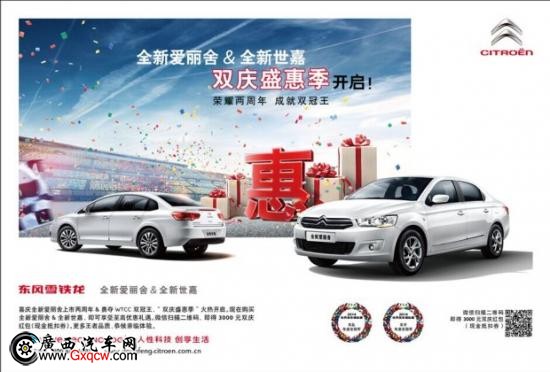 同時(shí),全新愛麗舍、全新世嘉還啟動(dòng)了 “榮耀兩周年 成就雙冠王”雙慶盛惠季感恩回饋消費(fèi)者行動(dòng),為廣大喜愛全新愛麗舍的用戶獻(xiàn)上驚喜大禮!凡是到店購(gòu)買全新愛麗舍、全新世嘉的用戶,即可參與微信掃描二維碼活動(dòng),贏取3000元雙慶紅包。