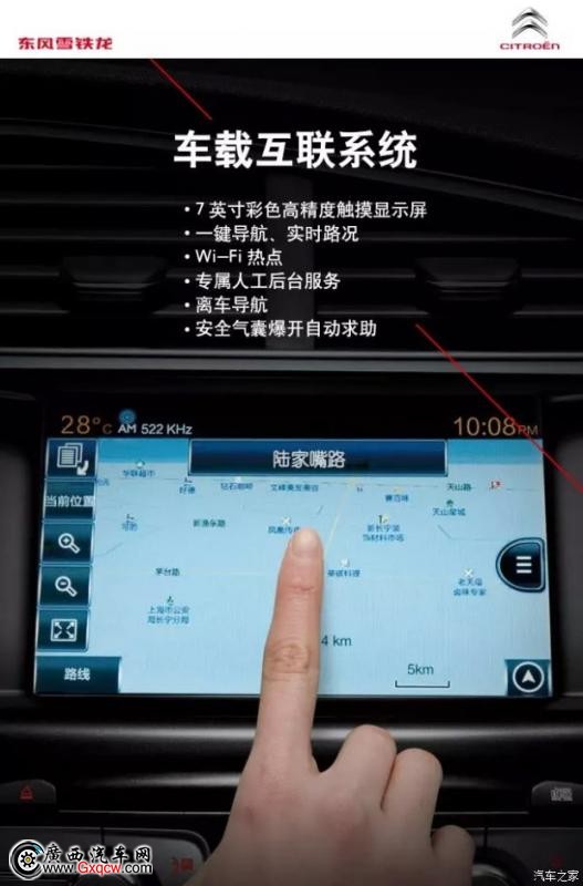 *后,新C4L搭載了Citroen Connect車載互聯(lián)系統(tǒng),該系統(tǒng)集導(dǎo)航、安全保障、互聯(lián)分享、資訊、無憂養(yǎng)車五大模塊于一體,配有導(dǎo)航、實(shí)時(shí)交通信息、安全氣囊起爆后自動(dòng)求助、車況檢測(cè)月報(bào)、WIFI熱點(diǎn)等多達(dá)21項(xiàng)子功能~你和Ta在一起,他不僅保護(hù)你,更能根據(jù)你的想法,主動(dòng)為你著想,絕不讓你有絲毫的不安。