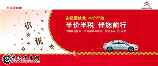 除了以上優(yōu)惠,東風(fēng)雪鐵龍廣西龍康還為您開啟半價(jià)購車行動(dòng)——半價(jià)半稅伴您前行。