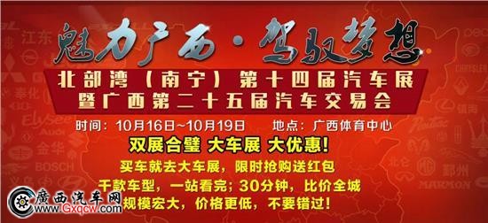 魅力廣西·駕馭夢想-北部灣(南寧)第十四屆汽車展暨第二十五屆汽車交易會(huì)于10月16日-10月19日在廣西體育中心舉辦。東風(fēng)雪鐵龍廣西龍康力邀您參與車展大型團(tuán)購活動(dòng)。 2015年10月16日至10月19日車展期間,憑購車紅包在談妥價(jià)格后出示可在原優(yōu)惠基礎(chǔ)上再享受紅包優(yōu)惠!4~10萬元車型——可優(yōu)惠300元;11~20萬元車型——可優(yōu)惠500元;21萬以上車型——可優(yōu)惠1000元。