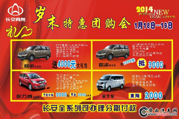 新年新氣象,你今年有購買你心愛的車子了嗎?如果還在猶豫,不敢下手,還在擔心價格問題,那南寧順奔將斷掉你的“煩惱絲”,為了迎接新年,我公司將“虧到血本”舉行大型的“年終沖量——終極團購”會,你不再“孤單”,長安商用鉅惠團購等著你,只要你敢買,我們就敢讓,前所未有的優(yōu)惠力度,機不可失!