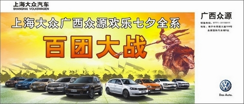 炎炎夏日,全城熱戀。8月9日【上海大眾廣西眾源 歡樂七夕全系百團(tuán)大戰(zhàn)】浪漫來襲引爆八月鉅惠盛宴。9-11日,上海大眾廣西眾源七夕最惠時(shí)刻,60臺廠家直供現(xiàn)車非你莫屬,機(jī)會不容錯(cuò)過!