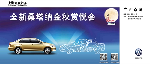 秋語(yǔ)傾心 悅享團(tuán)圓 情滿中秋,即日起至9月22日,上海大眾廣西眾源誠(chéng)邀您蒞臨金源國(guó)際汽車城廣西眾源銷售展廳,參與【全新桑塔納金秋賞悅會(huì)】悅享“全新桑塔納9月暢享超值計(jì)劃”。