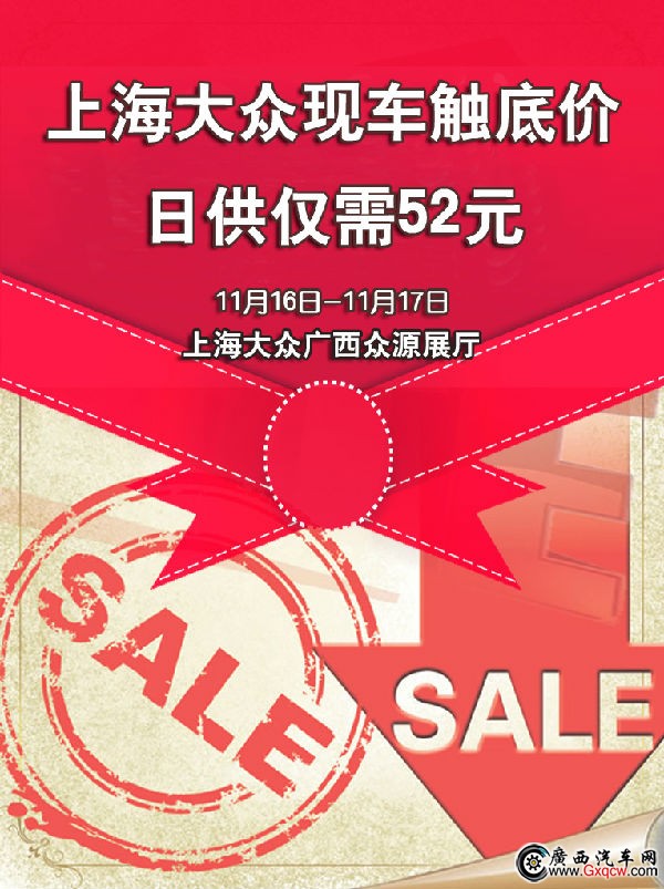 11月16-17日,上海大眾廣西眾源展廳全系現(xiàn)車觸底銷售!全新桑塔納*高綜合優(yōu)惠11000元,新POLO*高綜合優(yōu)惠16000元,新帕薩特*高綜合優(yōu)惠20000元,上海大眾全場售價僅69800元起。
