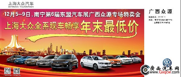 12月5-9日2013第六屆中國(guó)-東盟(南寧)國(guó)際車展將在南寧國(guó)際會(huì)展中心舉辦。廣西眾源攜上海大眾全系現(xiàn)車重鎊出擊,全系現(xiàn)車資源豐富,金源集團(tuán)璀璨18周年回饋大行動(dòng)*后一波價(jià)格優(yōu)惠!錯(cuò)過(guò)不再有!