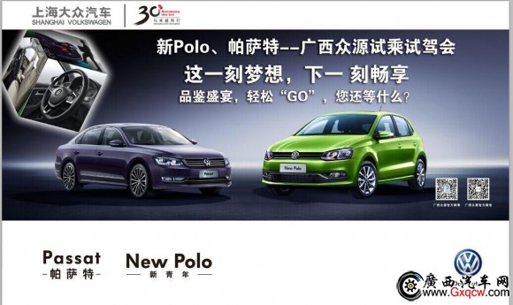 引擎的轟鳴,是速度的向往,更是“新青年”New Polo與“境自超然”帕薩特的召喚!您準(zhǔn)備好了嗎?到店參與駕駛“勢(shì)不凡、馭有道”的帕薩特及激情燃燒,無(wú)悔青春的“新青年”New Polo座駕一展身手。感受澎湃、刺激的駕駛樂(lè)趣。即日起關(guān)注廣西眾源官方微信,報(bào)名參與試乘試駕體驗(yàn),即可獲贈(zèng)“新青年”時(shí)尚T恤衫一件。參與熱線:0771-3113311。