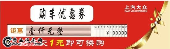 一元換購(gòu)千元優(yōu)惠禮:到場(chǎng)客戶交1元即可換購(gòu)1000元購(gòu)車優(yōu)惠券,直接抵扣購(gòu)車優(yōu)惠;