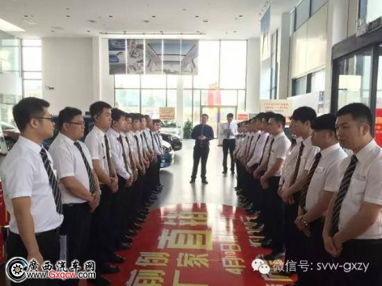 上汽大眾資深培訓(xùn)講師-范老師與許老師一道,正在給銷售一線的員工們進(jìn)行強(qiáng)化培訓(xùn),廣西眾源總經(jīng)理-付總現(xiàn)場打氣。為的是在4月10日當(dāng)天如何更好的服務(wù)好每一位顧客朋友!