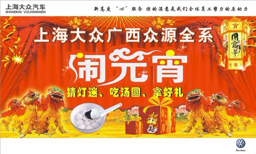2012元宵將至,上海大眾廣西眾源4S店攜全系邀您一起歡喜鬧元宵,2月4-6日蒞臨展廳,猜燈迷、吃湯圓、拿好禮。。