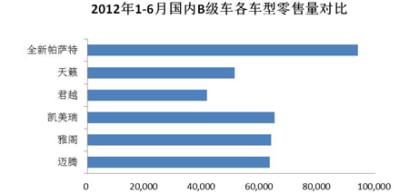 據(jù)*新數(shù)據(jù)顯示,2012年6月,全新帕薩特實(shí)現(xiàn)零售13,918輛,整個(gè)上半年全新帕薩特累計(jì)銷量近10萬(wàn)輛,穩(wěn)占B級(jí)車市頭把交椅,并且進(jìn)一步拉大了與競(jìng)品的差距。