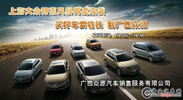 4月北部灣車展錯(cuò)過(guò)了?沒(méi)關(guān)系!廣西眾源周末“購(gòu)車歡樂(lè)升級(jí)”活動(dòng)又錯(cuò)過(guò)了?也沒(méi)關(guān)系!4月28日―5月1日安吉車展由廣西眾源掀起的上海大眾特惠風(fēng)暴再度來(lái)襲,買好車要省錢,先到廣西眾源對(duì)比再?zèng)Q定!