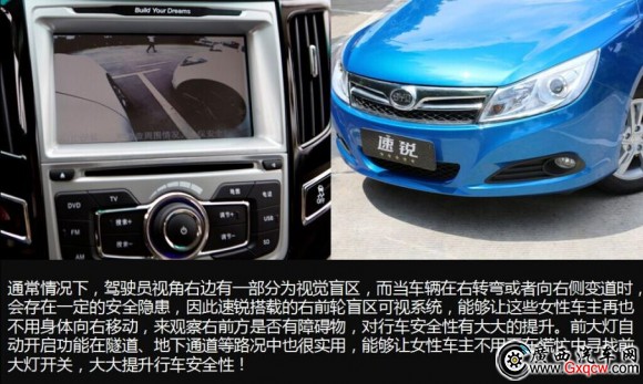 通常情況下,駕駛員視角右邊有一部分為視覺盲區(qū),而當(dāng)車輛在右轉(zhuǎn)彎或者向右側(cè)變道時,會存在一定的安全隱患,因此速銳搭載的右前輪盲區(qū)可視系統(tǒng),能夠讓這些女性車主再也不用身體向右移動,來觀察右前方是否有障礙物,對行車安全性有大大的提升。此外,前大燈自動開啟功能在隧道、地下通道等路況中也很實用,能夠讓女性車主不用再在慌忙中尋找前大燈開關(guān),大大提升行車安全性!