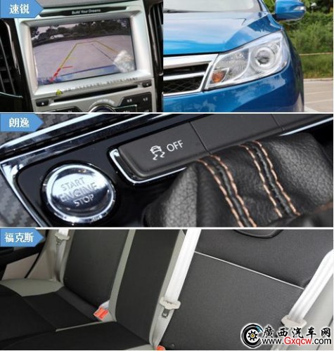 速銳延續(xù)了比亞迪家族高配風格,全系標配Keyless系統(tǒng)、全皮型多功能方向盤、自動恒溫空調(diào)等人性化配置,而且GPS語音導(dǎo)航、車載電視/電話等實用配置也一應(yīng)俱全;朗逸標配定速巡航、行車電腦顯示屏、多媒體系統(tǒng)、AUX/USB/iPod、8揚聲器、大燈高度可調(diào)等,雖大體上可媲美速銳,但Keyless系統(tǒng)僅是選裝配置不免有些遺憾;而?怂箖H有電動天窗、真皮方向盤、行車電腦顯示屏、外接音源接口、電動后視鏡等常見配置,相比速銳遜色太多。