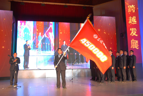 實(shí)現(xiàn)百萬量級(jí)汽車公司目標(biāo)》中說,東風(fēng)小康必須在第二個(gè)5年計(jì)劃內(nèi)完成從量變到質(zhì)變的轉(zhuǎn)變,形成與銷量匹配的品牌價(jià)值和品牌地位。要實(shí)現(xiàn)這些目標(biāo),如果我們以一種按部就班的穩(wěn)妥的方式發(fā)展,是不可能實(shí)現(xiàn)的,這需要我們跨越發(fā)展。 張總*后表示,只要全價(jià)值鏈同心協(xié)力,秉承東風(fēng)汽車公司“關(guān)懷每一個(gè)人,關(guān)愛每一部車”的理念,以一顆對(duì)東風(fēng)小康的無限熱愛之心,全部身心全部力量投入到東風(fēng)小康事業(yè)中,堅(jiān)定不移地推行精益(信息)生產(chǎn)方式,我們一定能夠?qū)崿F(xiàn)東風(fēng)小康百萬量級(jí)汽車公司目標(biāo)! 張總講話之后,東風(fēng)汽車公司黨委常委、東風(fēng)汽車集團(tuán)總裁、東風(fēng)小康汽車公司董事長朱福壽作了重要講話。 年會(huì)在東風(fēng)小康2011年目標(biāo)銷量宣誓授旗儀式中結(jié)束。東風(fēng)小康營銷服務(wù)商和營銷服務(wù)一線戰(zhàn)士起立共同宣誓,張總代表東風(fēng)小康汽車公司接受宣誓并將東風(fēng)小康2011年銷售目標(biāo)大旗交給東風(fēng)小康營銷戰(zhàn)士們。
