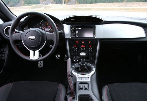 斯巴魯BRZ的內(nèi)飾看起來樸實(shí)中帶著動(dòng)感,中控臺無論造型還是材質(zhì)都和豪華完全沒關(guān)系,而且也沒有什么標(biāo)新立異的設(shè)計(jì),一切都很簡單很平淡。它唯獨(dú)不缺的就是運(yùn)動(dòng)感,類似STI的儀表、80年代風(fēng)格的方向盤、撥片式的空調(diào)開關(guān)等等這些都向我們宣示這是一輛純粹的跑車。