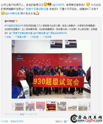 2月12日斯巴魯汽車南寧百事成專賣攜手南寧930電臺聽眾,“超級試駕會”活動圓滿收官。南寧930電臺著名主持人黃經(jīng)理、檸雙親臨現(xiàn)場與多位車友在試駕會現(xiàn)場體驗(yàn)斯巴魯車型的顛峰性能。百事成斯巴魯精心設(shè)計(jì)的試乘試駕項(xiàng)目,讓南寧車友得以零距離體驗(yàn)斯巴魯車型的卓越品質(zhì),以及斯巴魯不俗的駕控性能和感受。
