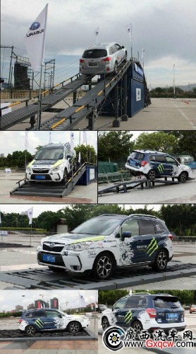 試駕科目:輪胎陣、單邊失速、雙邊橋、顛簸路面、樓梯路、交叉失速駝峰