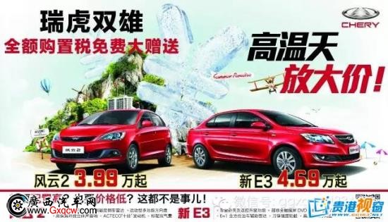 好消息!好消息!22日奇瑞初秋的團(tuán)購(gòu)活動(dòng)開(kāi)始了!初秋促銷(xiāo)狂潮,奇瑞店將一降到底恭候您的光臨,與其舟車(chē)勞頓在烈日中汗流浹背看車(chē)展,不如來(lái)奇瑞溫馨的展廳享受冷飲、空調(diào)、美食,熱情專(zhuān)業(yè)一對(duì)一真摯的服務(wù)。多重繽紛好禮大放送,等您來(lái)暢享!