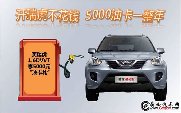 此次,瑞虎“佳節(jié)豪禮四連送”活動(dòng)自2012年12月1日至2013年2月28日;顒(dòng)期間,凡購(gòu)買瑞虎1.6DVVT手動(dòng)檔運(yùn)動(dòng)型即可獲得5000元“油卡禮”,同時(shí),還可獲得3000元“節(jié)能禮”,享受國(guó)家節(jié)能惠民補(bǔ)貼,以及價(jià)值5000元“裝飾禮”,豐富的內(nèi)容超乎想象。