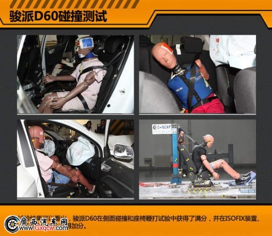從試驗(yàn)結(jié)果可以看出,駿派D60在側(cè)面碰撞和座椅鞭打試驗(yàn)中獲得了滿分,并在ISOFIX裝置、ESC等五個(gè)項(xiàng)目上獲得加分。