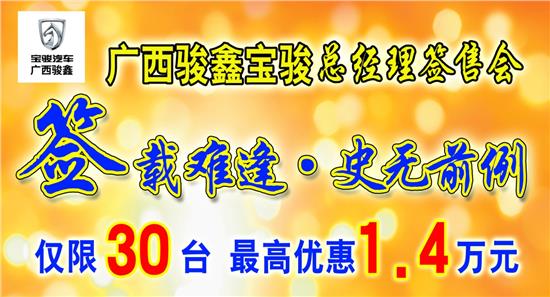 寶駿汽車廣西駿鑫4S旗艦店賀上汽通用五菱合資11年,第1010萬臺產品下線。服務萬千用戶,獲得諸多信賴!寶駿汽車,源自通用汽車,秉承上汽通用五菱品質理念,以千萬心意回饋用戶萬千信賴!本周末在駿鑫寶駿舉行“廣西駿鑫寶駿-總經(jīng)理簽售會”,歡迎廣大車友光臨!