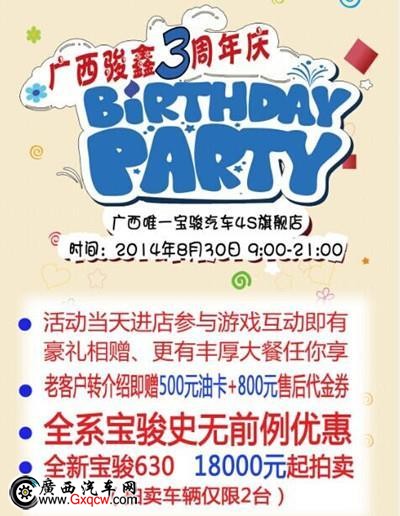 風雨同舟!尊榮共享!駿鑫感恩!一路有你!廣西駿鑫全系寶駿****鉅惠全城!8月30日寶駿全系車型感恩三載進店就有機會獲得豐厚大獎!訂車還可額外抽取豪華大禮!現(xiàn)場更有豐盛冷餐及精美演藝!廣西駿鑫售前售后齊鉅獻,讓您從多方位角度直享三周年感恩鉅惠大禮!