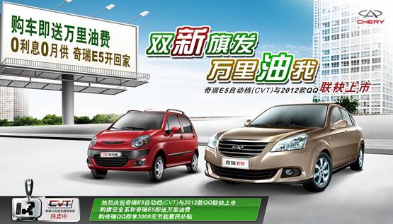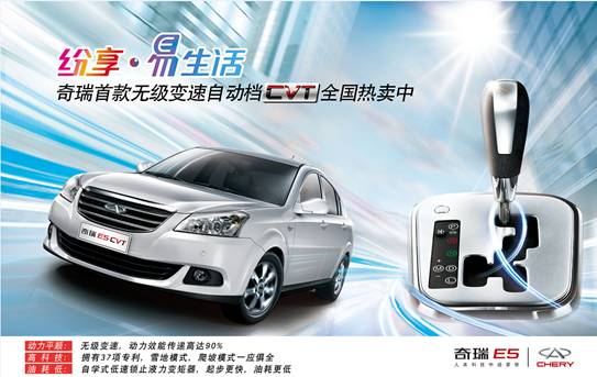 長(zhǎng)期以來,奇瑞堅(jiān)持“只為國(guó)人造好車”,制造出深受消費(fèi)者喜愛的車型。借勢(shì)此次活動(dòng)而全面上市奇瑞E5自動(dòng)檔(CVT)便是其代表。