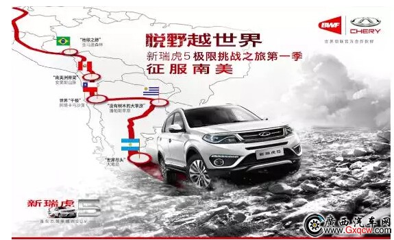 地球上的每一個(gè)最美之地總會(huì)留下“悅野人”的車轍新瑞虎5 48%超大爬坡度必然助我勇登安第斯山脈·1.5T渦輪增壓引擎更為馳騁南美提供充足動(dòng)力·越野式190MM離地間隙 0.6M涉水深度我讓輕松趟過清澈涓流的溪水·全系標(biāo)配博世ESP全身電子穩(wěn)定系統(tǒng)多路況調(diào)校的前麥弗遜式獨(dú)立懸架&后雙連桿式獨(dú)立懸架讓南美山地之旅如履平地!▼看似遙不可及的夢(mèng)想之地因勇敢的心變的觸手可及逃離城市的鋼筋水泥去南美享受激情與野性吧!