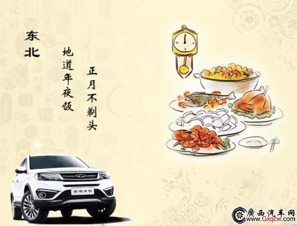 東北人最看重的頭一件大事就是三十兒晚上的年夜飯了,這頓年夜飯是年邁父母心頭的大盼,通常要包括“四大件兒”——雞、鴨、魚(yú)、肘子,缺一樣都不行,否則就是不地道。東北人一般在大年初一到農(nóng)歷二月初一之間不能剪頭,認(rèn)為如果剪頭會(huì)克舅舅,所以十分忌諱。會(huì)在“二月二,龍?zhí)ь^”期間剪頭,討個(gè)吉利。奇瑞君雞鴨魚(yú)肘子,果然有東北人大碗喝酒,大口吃肉的性格。對(duì),東北哥們是最重視年夜飯的,不管多遠(yuǎn)都要趕在年夜飯之前回家。