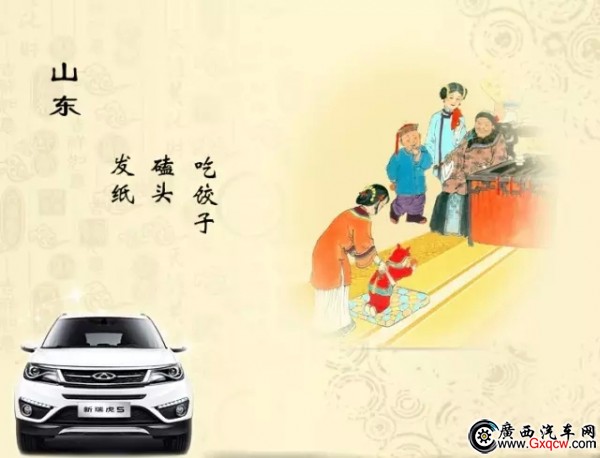 山東的春節(jié)一般從初一零點(diǎn)開(kāi)始,家長(zhǎng)們要先起來(lái)“發(fā)紙”,即在門(mén)前放一掛鞭炮,之后才能說(shuō)話。當(dāng)?shù)睾芏噢r(nóng)村還保留了大年初一晚輩給長(zhǎng)輩磕頭的習(xí)俗,山東人的**頓飯必須是餃子,餃子中會(huì)包各種具備特殊意義的食餡,比如紅棗代表勤儉致富,栗子代表身體強(qiáng)壯,花生米代表長(zhǎng)命百歲,錢(qián)代表發(fā)大財(cái)。奇瑞君餃子餡可真有意思,虎5君最想吃什么餡的?我?你猜呀!