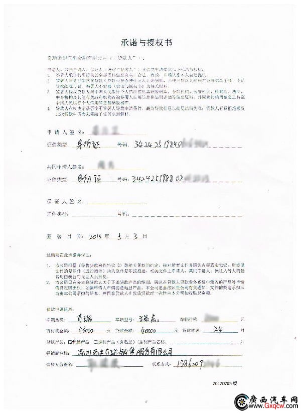 就是表明是由我委托4S店向奇瑞金融公司申請貸款,都是標(biāo)準(zhǔn)文件,也就沒細(xì)看。