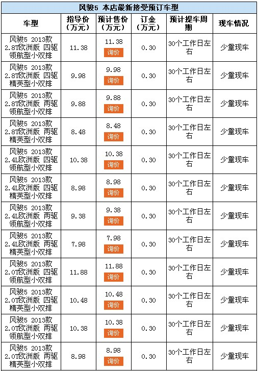 廣西長(zhǎng)道4S店都已有現(xiàn)車到店,試乘試駕預(yù)約已火熱啟動(dòng),喜歡風(fēng)駿5歐洲版的朋友們可以撥打廣西長(zhǎng)道各4S店試駕熱線進(jìn)行咨詢預(yù)約。