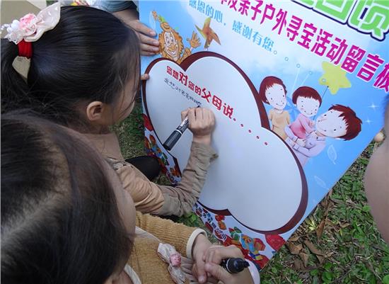 活動(dòng)后,說(shuō)出自己的心理話,孩子和家長(zhǎng)們都在畫板上,寫下對(duì)家長(zhǎng)的期望,把自己對(duì)子女的祝福寫下,深深的激發(fā)與觸動(dòng)父母與子女內(nèi)心深處的感恩情懷.