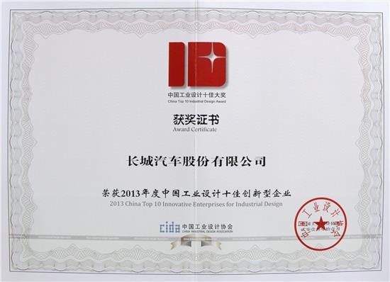 日前,中國工業(yè)設(shè)計(jì)協(xié)會(huì)評(píng)選的“2013年度中國工業(yè)設(shè)計(jì)十佳大獎(jiǎng)”榜單揭曉,長(zhǎng)城汽車獲評(píng)“中國工業(yè)設(shè)計(jì)十佳創(chuàng)新型企業(yè)”。