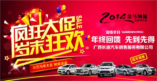 滿城歡樂(lè)迎新年,長(zhǎng)道送福祝團(tuán)圓。2013年,在進(jìn)駐廣西的三年里,廣西長(zhǎng)道汽車就以**一步的服務(wù)宗旨贏得了廣大車友的信賴、支持與厚愛(ài),取得了“長(zhǎng)城汽車全國(guó)標(biāo)桿店”的榮譽(yù)稱號(hào)。在新年來(lái)臨之際,廣西長(zhǎng)道特推 “瘋狂大促,年末逛歡”活動(dòng),現(xiàn)車銷售,讓您享到全年*低價(jià)。長(zhǎng)城M4豪禮享不停,更有年終限量禮包。心動(dòng)不如行動(dòng),讓我們一起把愛(ài)帶回家過(guò)年吧!